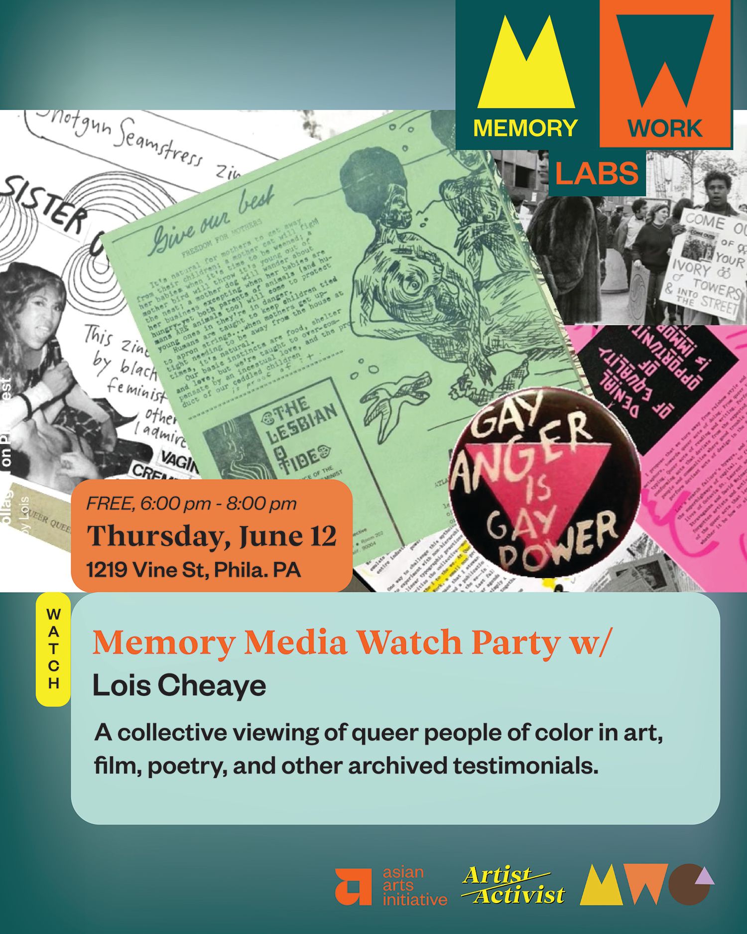 Memory Workers Guild (MWG) is partnering with Asian Arts Initiative for the second iteration of Memory Work Labs, a series of collective learning spaces framed by guild members to exchange ideas, organize around our labor experiences, and build on our personal creative toolkits.